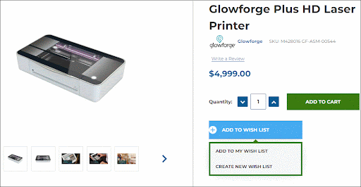 On the product page, click on “Add to Wish List.” You can choose a default “My Wish List” or choose to name your own. You can always edit the name later.