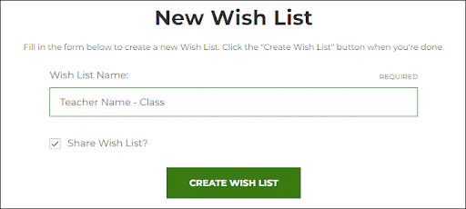 Choosing to create a new Wish List, or editing it later, will prompt you to name the Wish List. You can have one for each class, each teacher, or a combination.